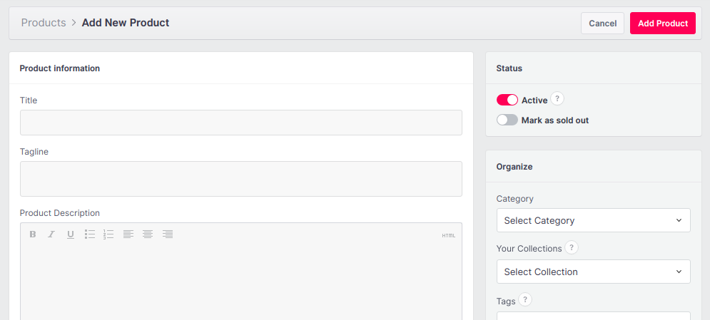 Tax: If you want to collect sales tax on the product, you will need an active TaxCloud account. You can read about collecting taxes in this help article.